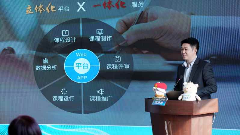 智慧树网黑龙江省负责人李廷总体介绍了东西部高校课程共享联盟及超级精品课的运行情况,李总代表智慧树制作团队重点宣讲了对“院士金课”全方位立体式的建设方案。并承诺智慧树网将对“院士金课”重点打造、重点建设、重点推广、重点运行。