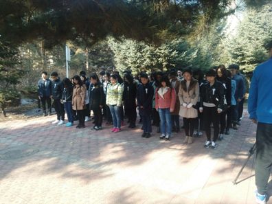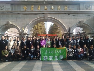 上午八点半,一行人早早来到了哈尔滨市烈士陵园,每个人都怀着无比沉重的心情,哀思先烈英灵,缅怀他们的丰功伟绩,去追忆那枪林弹雨的壮丽画卷,记述那烽火连天的峥嵘岁月。全体同学奏唱了国歌,请研究生代表清扫了墓地,并向烈士墓敬献了花篮,最后全体同学集体默哀。哀曲鸣鸣,我们站在烈士墓前,仿佛看到了英雄们在战斗中不惜抛头颅、洒热血、出枪林、入弹雨、追穷寇、剿顽匪的激烈场面。同时,大家也参观了哈尔滨烈士陵园纪念馆,看到一幅幅图片、一件件遗物,心中不时翻起阵阵疼痛,更加感知到战争的残酷和人民英雄的悲壮气概。
