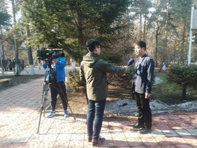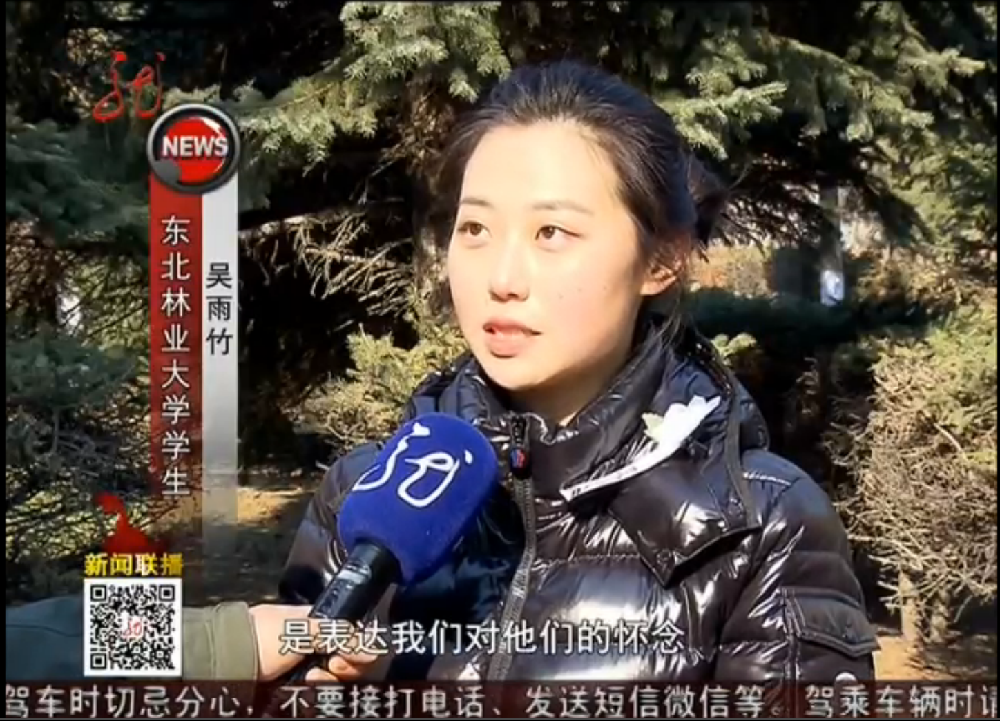 活动期间,黑龙江省电视台现场全程记录了这次具有重大意义的纪念活动。同时,采访了学生代表赵永峰、吴雨竹同学,他们面对记者讲述了此次活动的意义,表达了对为人民解放、新中国的诞生而英勇牺牲的革命先烈的崇高敬意。