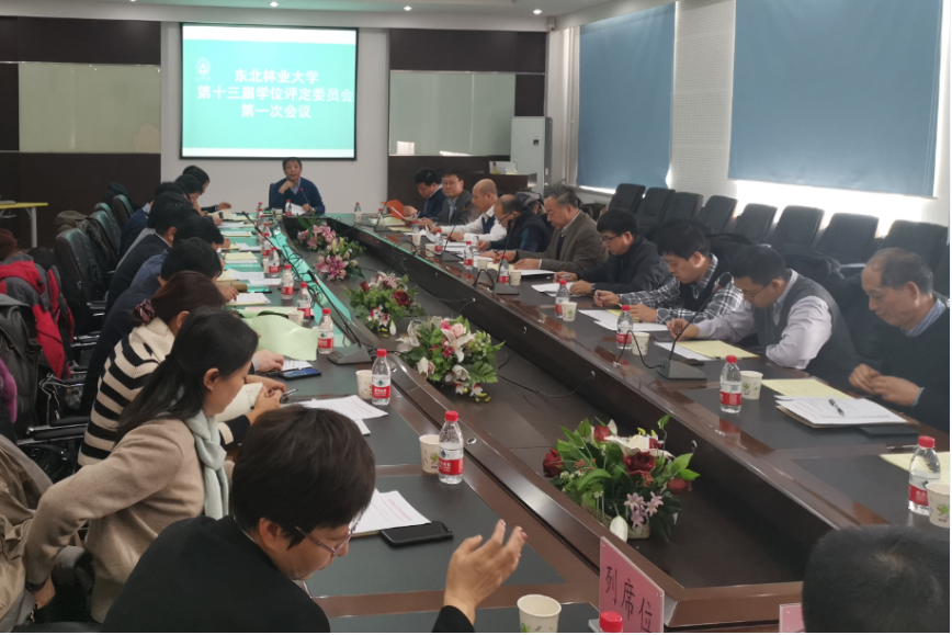 2019年12月26日下午,东北林业大学第十三届学位评定委员会第一次会议在研究生院709会议室召开。会议由校学位评定委员会主席李斌校长主持,22位校学位评定委员会委员出席了会议。