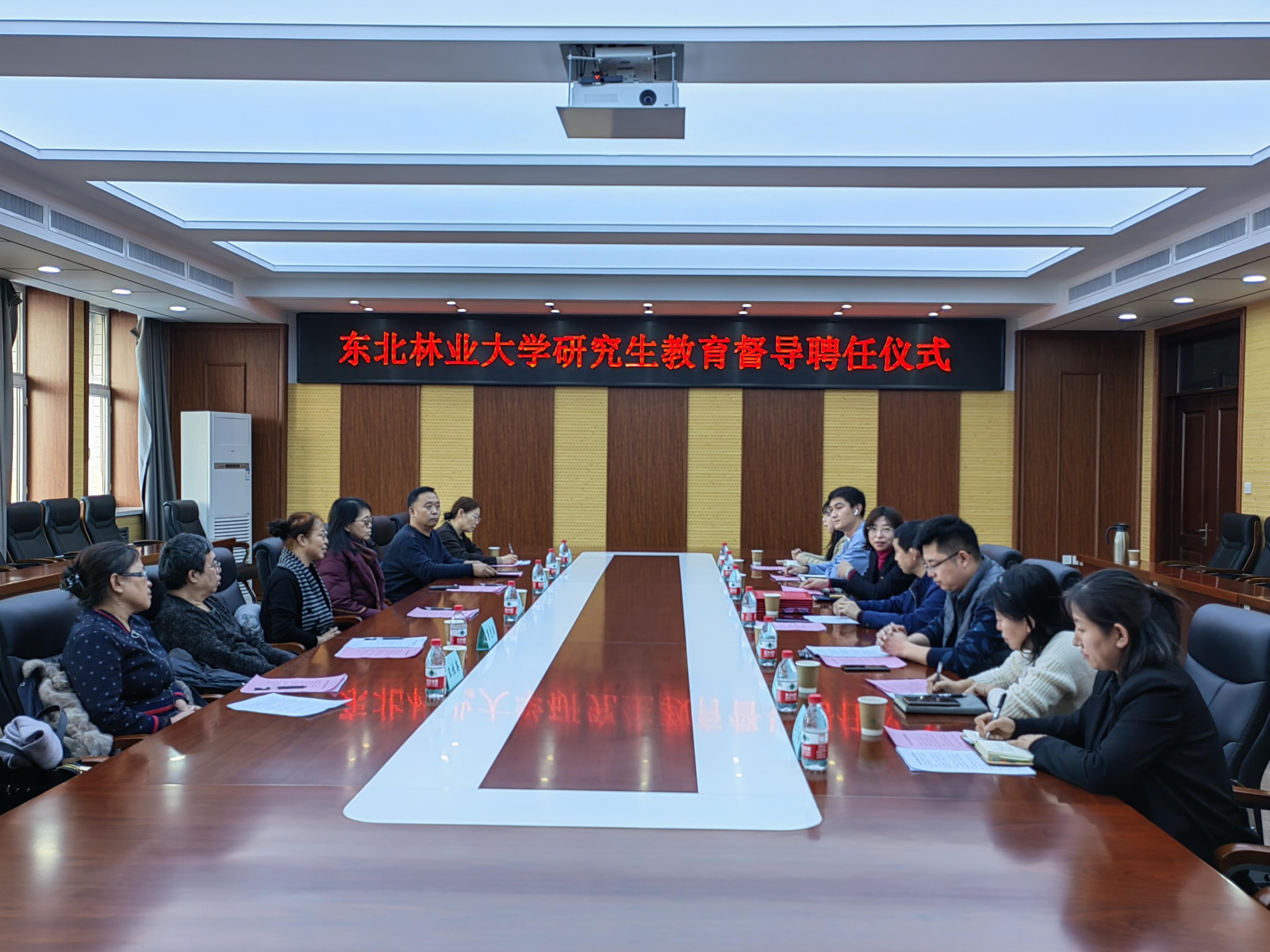会上,都雪静宣读了《东北林业大学研究生教育督导选聘决议》。陈广胜为新一届研究生教育督导颁发了聘书。