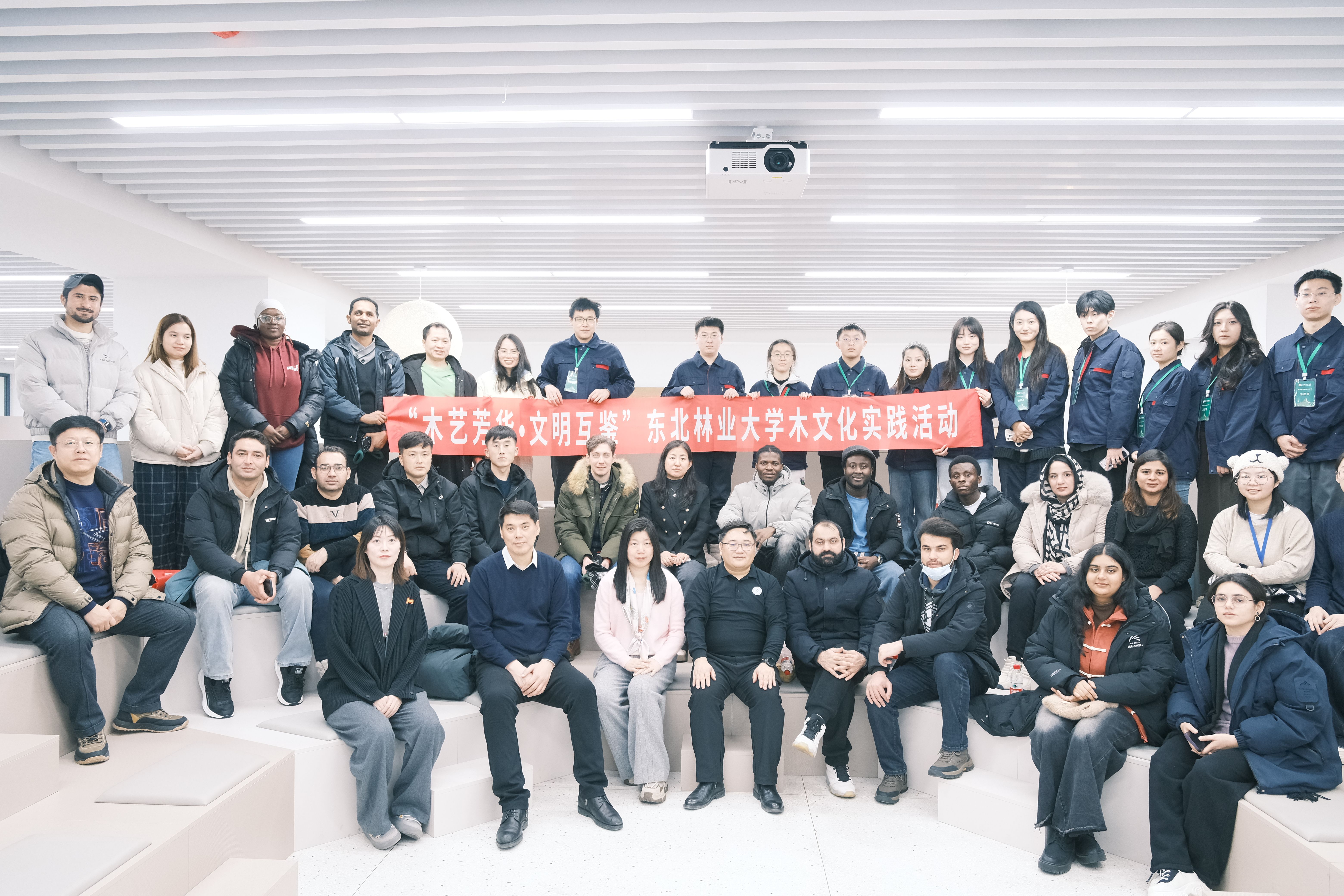 12月30日,家居与艺术设计学院全国示范性劳模和职工创新工作室暖意融融,一场以“木艺芳华 文明互鉴”为主题的木文化实践活动圆满举行。来自俄罗斯和巴基斯坦等国的30余名中外学子齐聚一堂,以木为媒共探传统技艺,共叙文化友谊。